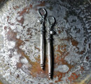 刻印入りロングカレンシルバーとハンドメイドシルバー、ナバホパール、インドシルバー鈴を繋いだちょっと長めなピアスです。