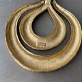 1910年に設立されたジュエリーブランド「TRIFARI」のUSAヴィンテージネックレスです。ミッドセンチュリーの大胆な魅力溢れるデザイン。マット仕上げのダブルティアドロップはモダンでありながら繊細な美しい仕上げで、ヴィンテージコスチュームジュエリーの中でもひときわ目を惹く逸品です。さらに、こちらのアイテムには、トリファリが人気絶頂期にあった1930〜1950年代にかけて使用されていた「クラウン・トリファリ」の刻印が入っています。大ぶりで存在感がありスタイリングにゴージャスな雰囲気をプラスしてくれます。