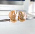 真珠層が厚いので天然カラーのピンクオレンジの上に