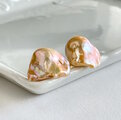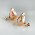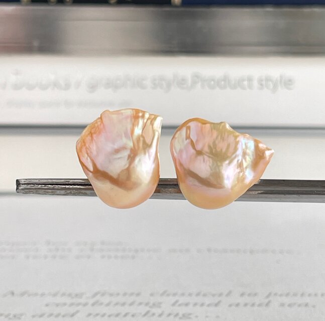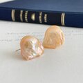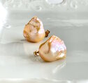オイスター バロックパール ヒラヒラが可愛い ピンクオレンジの スタッドピアス K14gf イヤリングに変更可能