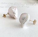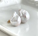 オイスターバロックパール ぷっくり オーロラホワイトスタッドピアス K14gf イヤリングに変更可能