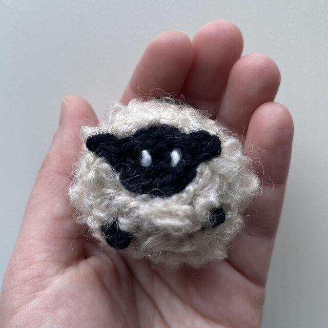 身体は薄いベージュ、顔と足は黒の毛糸を使用しています。