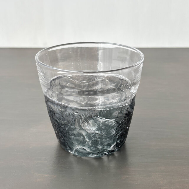 上部はクリアガラス、下部に透明な濃い灰色の色ガラスを一番外側に被せて、