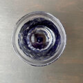 上部はクリアガラス、下部に透明な濃い紫色の色ガラスを一番外側に被せて、