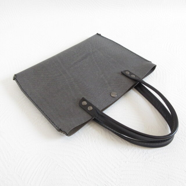 〇キメの細かいジオメトリック模様が型押しされたダークグレーボディにブラックの
