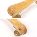 金具は ゴールドのプラスチックカバー付き丸足、金具同士の直線距離は 28.5cm、金具の足は 4cm ほどです。