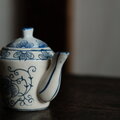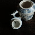 乾隆年製◆中国産 花唐草文染付小ぶり急須 煎茶茶器 中国茶 インテリアオブジェ シノワズリ 【アマテ】