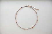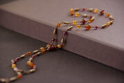 そのまま一連ネックレスとして、また、引き輪を反対側の先端部分の丸カンに通してY字スタイルにすることも可能です。赤やオレンジは見ているだけで気持ちが明るくなりますね。