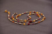 気力や活力を与えてくれるホットカラーの天然石を使用した2WAYネックレスです。カーネリアンは勇気と積極性、ガーネットは生命力、アンバーは元気というエネルギーをもたらしてくれます。これらの石たちをバランス良く配置し、ベージュ系の極小パールで品良くまとめました。