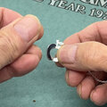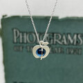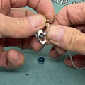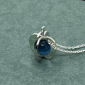 りんごのシルエットの2枚のシルバーパーツを組み合わせて中央に球体の8mmの石をスプリングギミックと名付けた独自の石留で作られています。