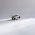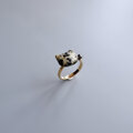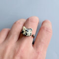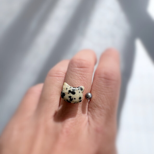 デザイン②ぷっくりベージュ 黒斑模様 猫 天然石 高品質ブラック淡水パールxダルメシアンジャスパー フォークリング指輪