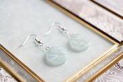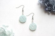 半透明のブルーにラメを乗せ、水面のような模様を描いた、しっとりとした風情を持った優しいカラーリングのピアス。