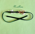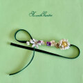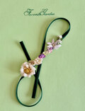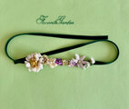 グリーンのベルベットのリボンに主にホワイト系の花々と小花を配したシンプルですが可愛いヘアコサージュです。