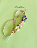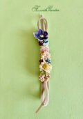 べージュのベルベットのリボンにパリで出会ったヴィンテージのブルーの大きなフラワーと沢山のフラワーを配して作ったヘアコサージュです。