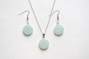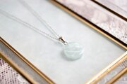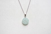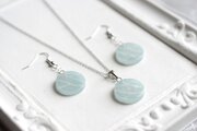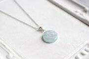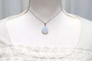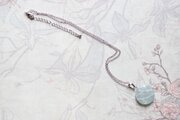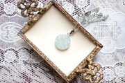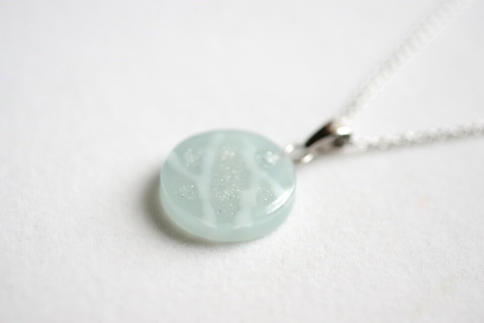 半透明のブルーにラメを乗せ、水面のような模様を描いた、しっとりとした風情を持った優しいカラーリングのペンダント。