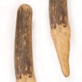 一方の先端は鉛筆の先のように削れて細くなっており、そこには細やかな年輪模様が見えています。