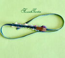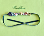 濃いブルーのベルベットのリボンに小さめの花々を配したヘアコサージュです。