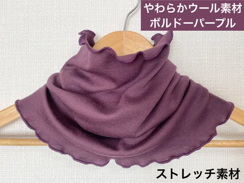 あったかウール素材100%スムースボルドーパープルハンドメイドネックウォーマー寒さ対策に最適