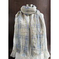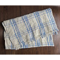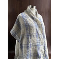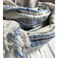 秋冬 東炊き リネンのストール 亜麻色×ブルー