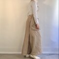 落ち着いた色味のベージュで、濃色(ネイビーや黒、茶)との組み合わせも好相性。