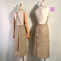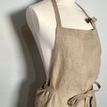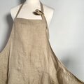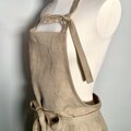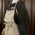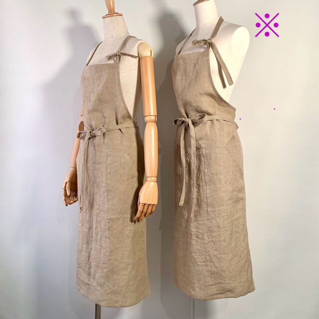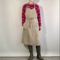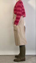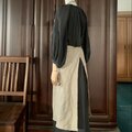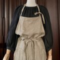 ・リネンツイル素材を生かした膝下丈のエプロン。