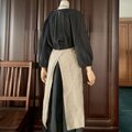 ウエストひもを巻き付けて前で結ぶことで、洗練された印象に仕上げています。