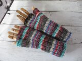 こちらのタイプは本体を変わりゴム編みで編み親指はメリヤス編みで編んでます。
