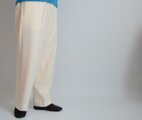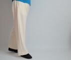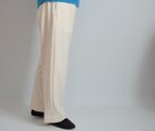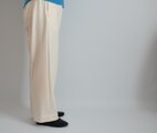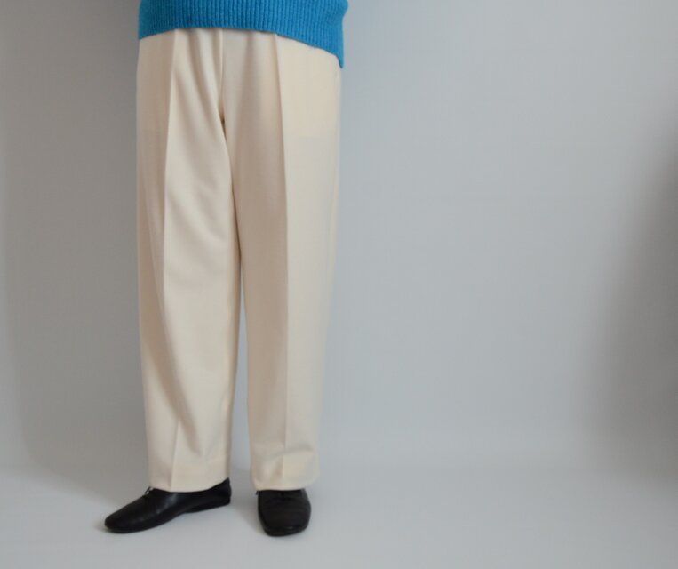中肉厚で伸縮性のあるツイル生地で仕立てたストレートの白パンツ