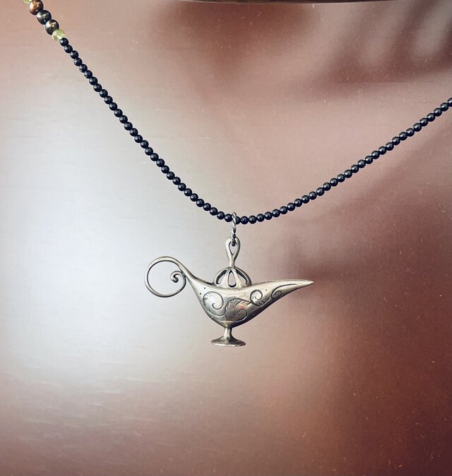 ランプは美しい形をしていてその先から魔人が出て来るのかも…と想像力が掻き立てられます。