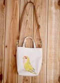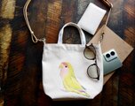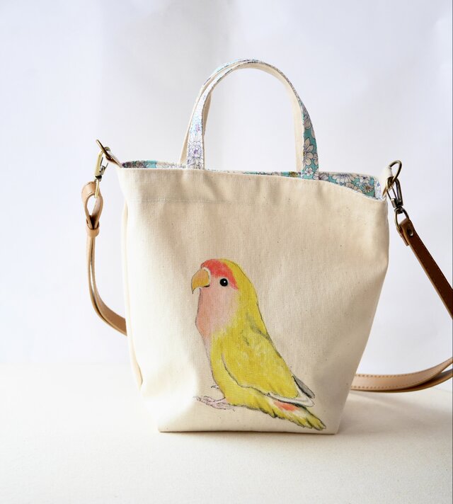 小さな帆布のバッグに、ルチノー・コザクラインコを描きました。