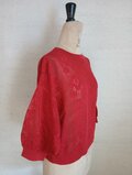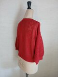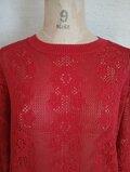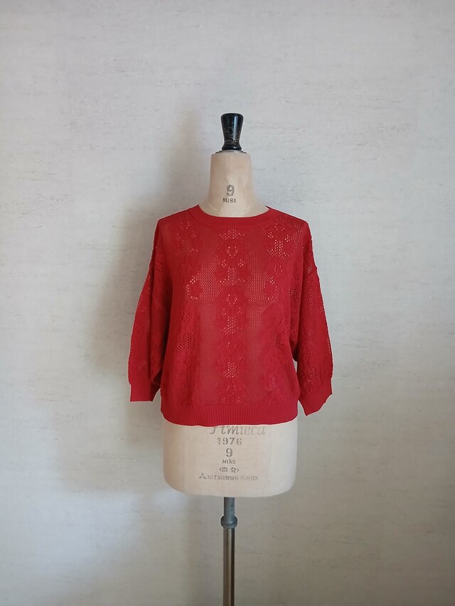 【2026♡新作】コットン混フラワー透かしプルオーバー(8分袖)ダークレッド