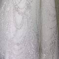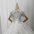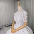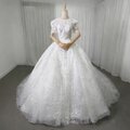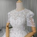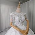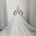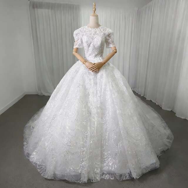 豪華!ウェディングドレス 韓国風ドレス リーフ刺繍 短袖 贅沢な総レース シークインチュール ロングトレーン 拳式