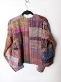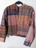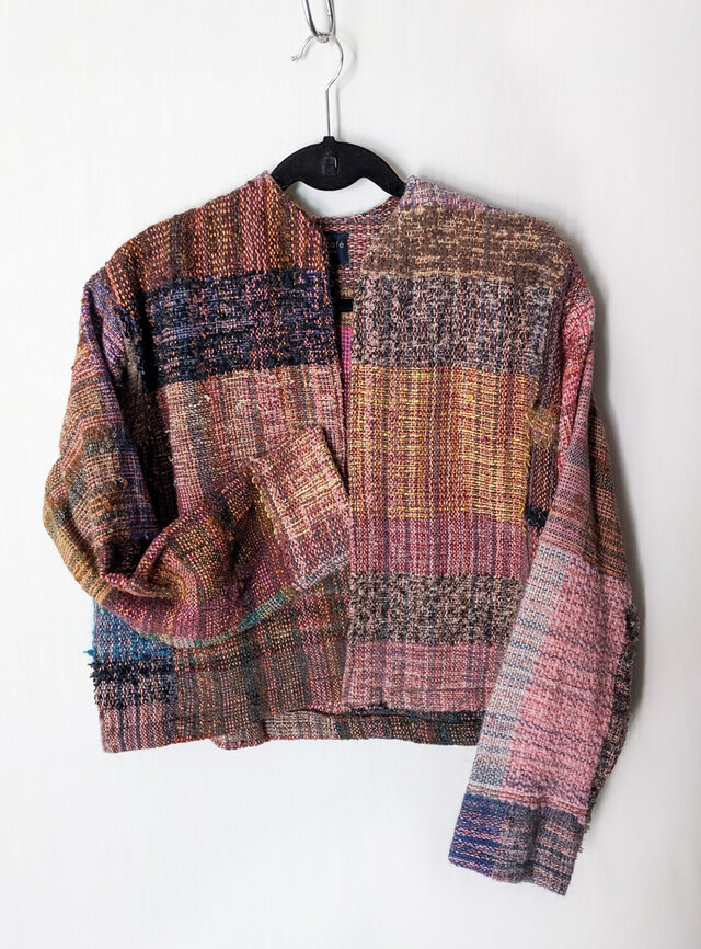 鮮やかな手織りのノーカラージャケット さをり織り