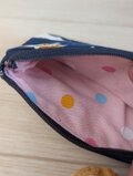 裏地はキャンバス。ネイビーと相性の良いピンクの水玉を使っています。