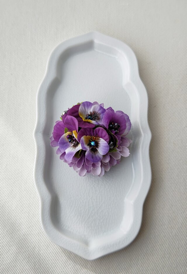 パープルのパンジーに細かい花びらを人魚のように組み合わせ