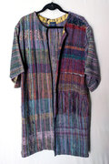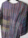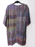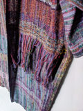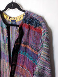 【個性的】さをり織りの艶やかカラフルロングコート ノーカラー
