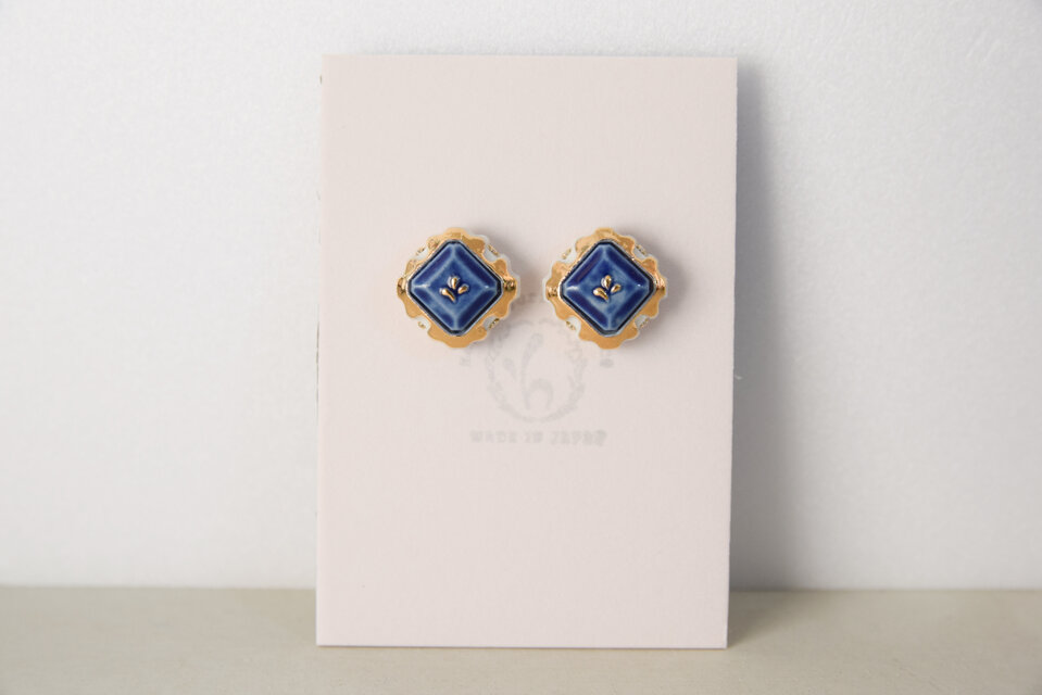 アンティークな宝石箱を想わせるゴージャスな印象の作品で、金彩がキラリと光る存在感抜群のピアスです。
