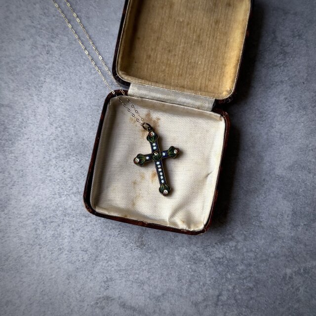 292 アンティーク お守りみたいなクロス―マイクロモザイク ネックレス