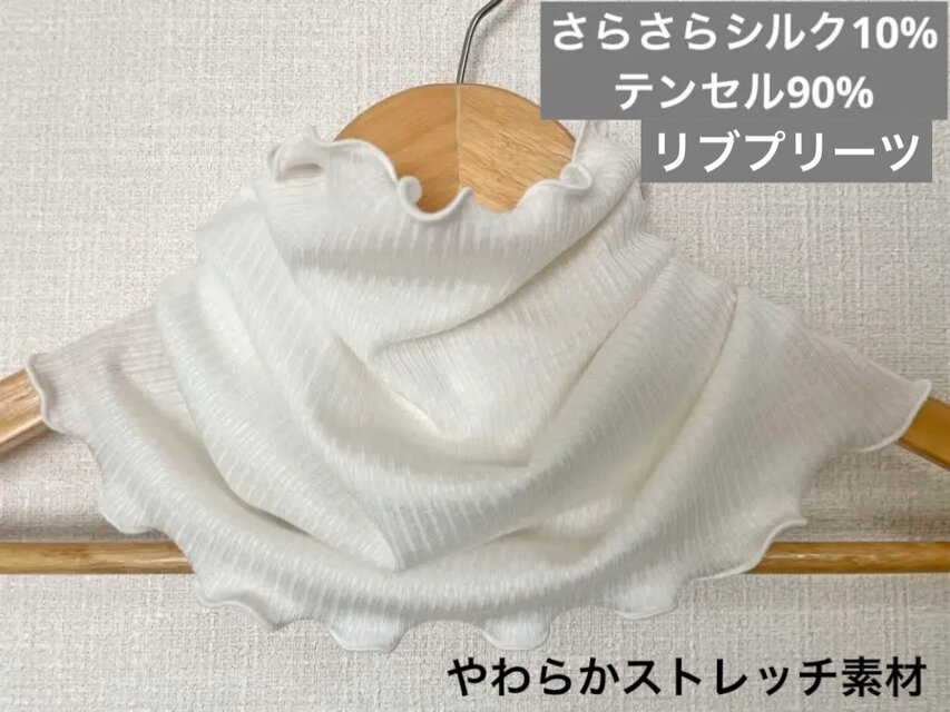さらさら肌感シルク10%テンセル90%リブプリーツハンドメイドネックウォーマー