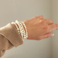 天然パールの自然な色と輝きを再現するよう、樹脂を何層にもコーティングして作られています。柔らかくまろやかな色味、ホワイトアイボリーで肌馴染みがよく、艶のある仕上がりとなっています。