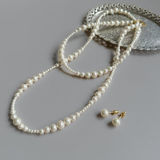 パールのグラデーション ロングネックレス 4way(ステンレス)フォーマルにもカジュアルにも4way