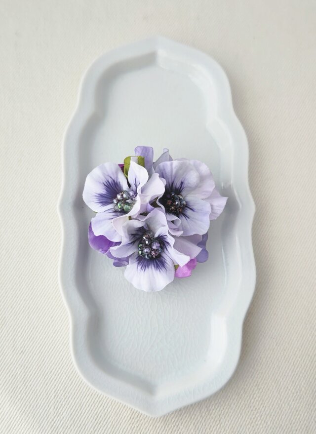 パンジーのゆらゆらした柔らかさに、細かいカットガラスの煌めきを合わせた