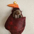 芯材の厚手紙・ポリ綿をウール生地で縫い込んだ軽い壁飾り。