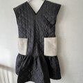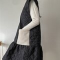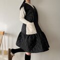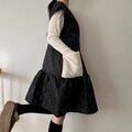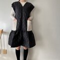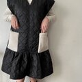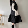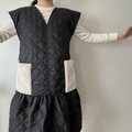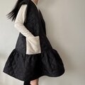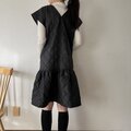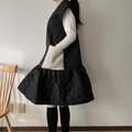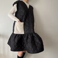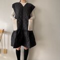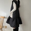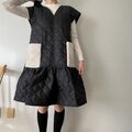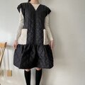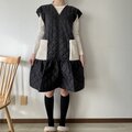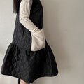 軽やかなナイロンキルト生地を使用した、ローウエスト切り替えのギャザーワンピース。