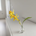 ナチュラルなガラス花器にマジカルウォーターを入れ、可憐な水仙を挿しました。