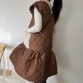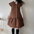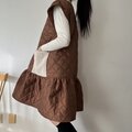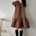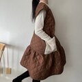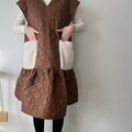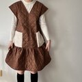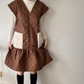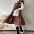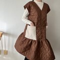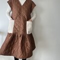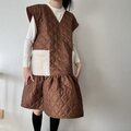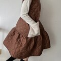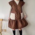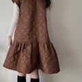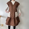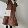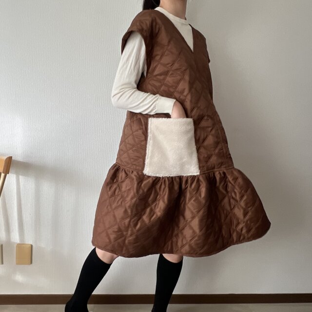 軽やかなナイロンキルト生地を使用した、ローウエスト切り替えのギャザーワンピース。