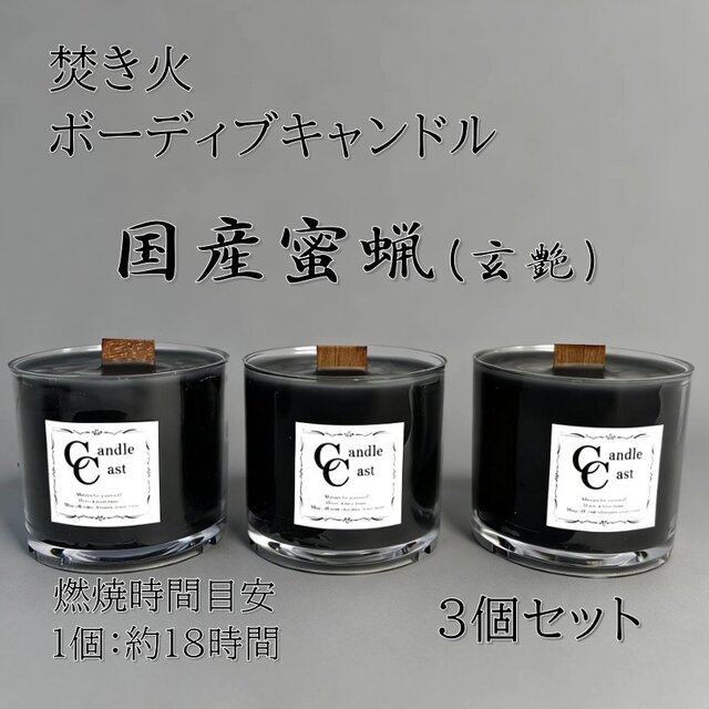 ボーティブキャンドル 焚き火 蜜蝋キャンドル 3個セット みつろう【ブラック】