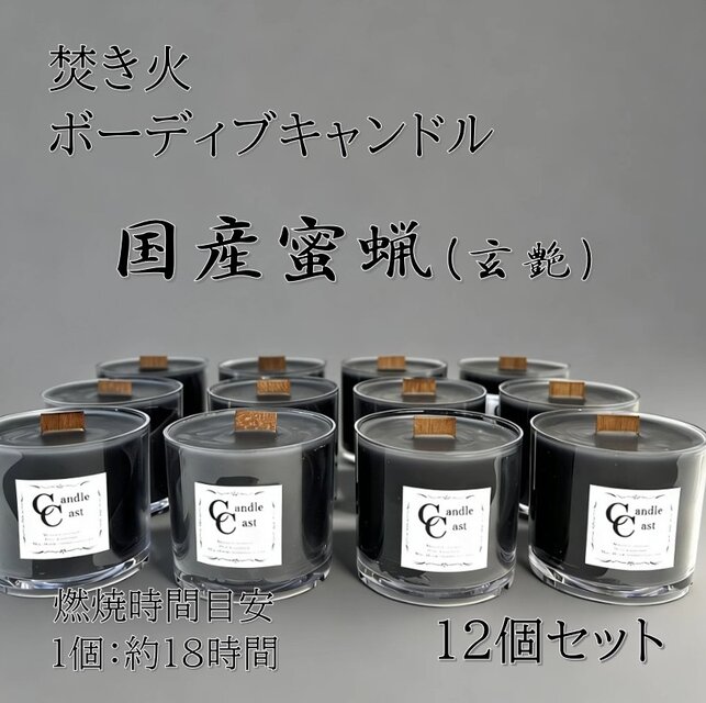ボーティブキャンドル 焚き火 蜜蝋キャンドル 12個セット みつろう【ブラック】