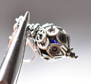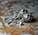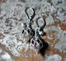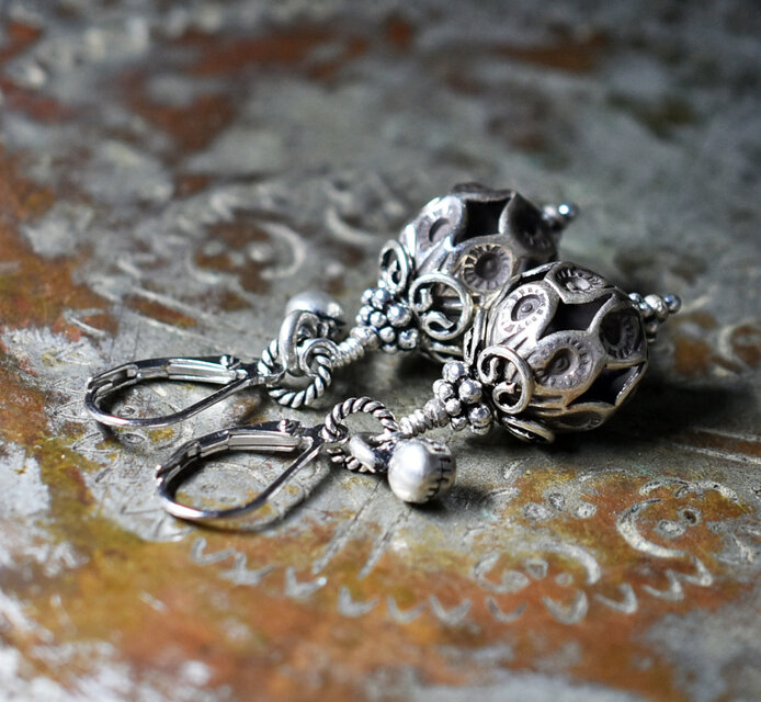 鳥かごの様なカレンシルバー、隠れブルービーズ、インドシルバー鈴を繋いだピアスです。