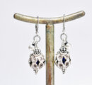 鳥かごの様なカレンシルバー、隠れブルービーズ、インドシルバー鈴のピアス